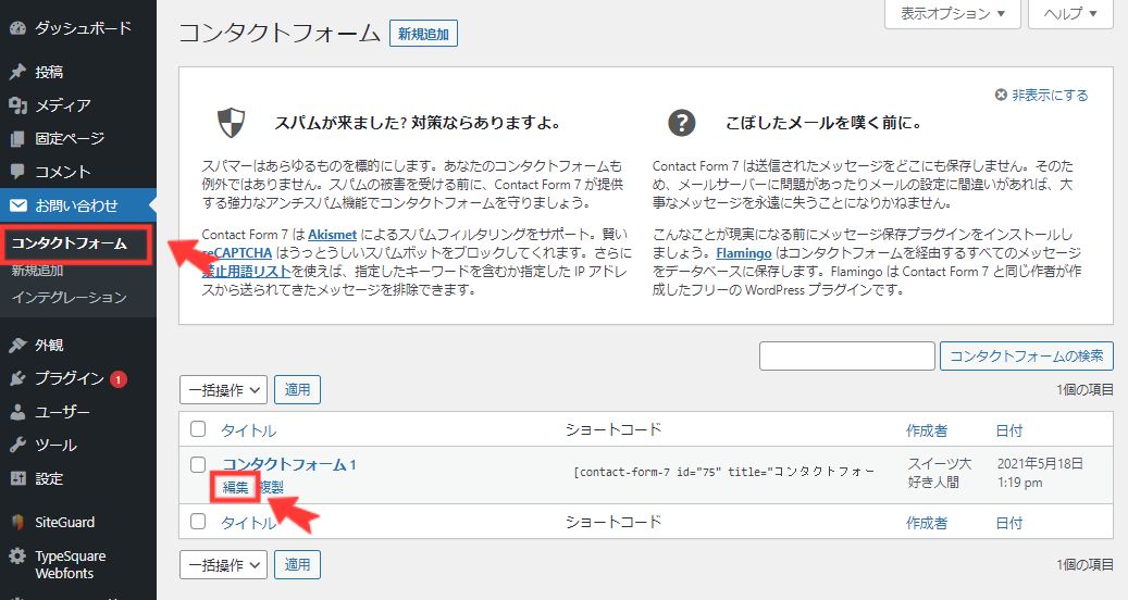 サイトに、コメントやお問い合わせフォームを導入するならスパム対策は必須ですので、有効化しておきましょう。